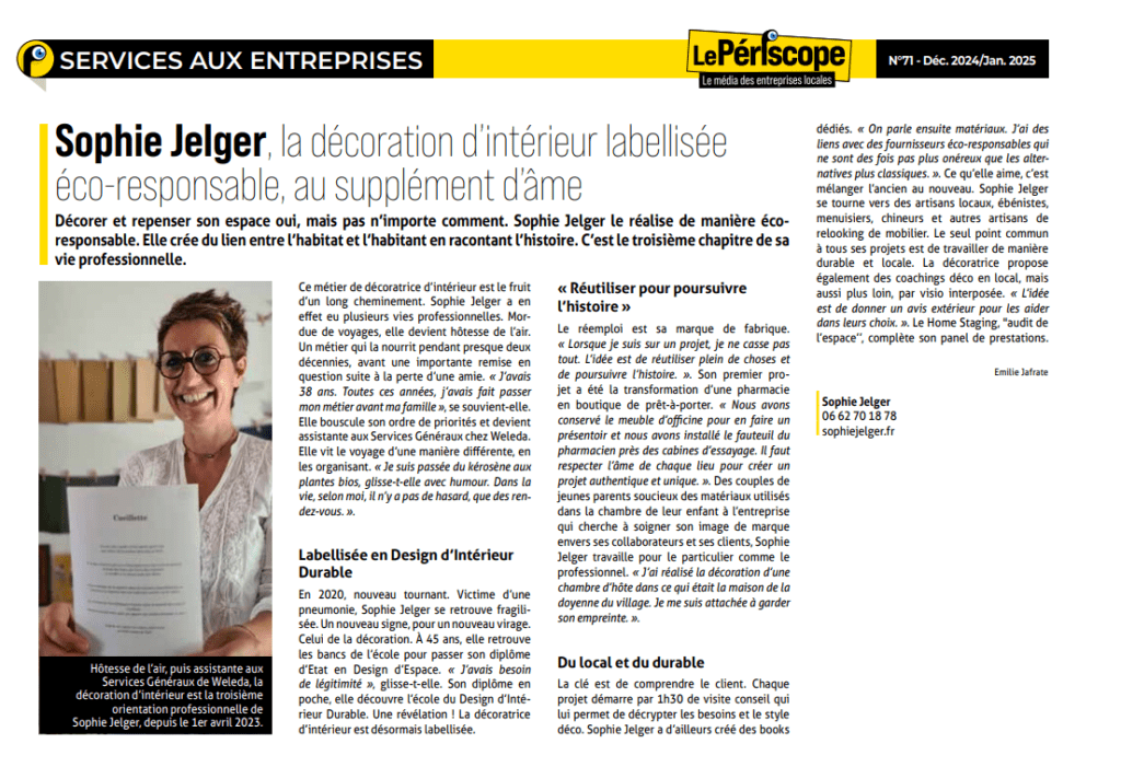 J’ai choisi de mettre mon savoir-faire au service d’une approche plus durable et humaine. Mon rôle est d’accompagner particuliers et professionnels à concevoir des intérieurs uniques, esthétiques et pertinents, en intégrant des choix responsables à chaque étape du projet.